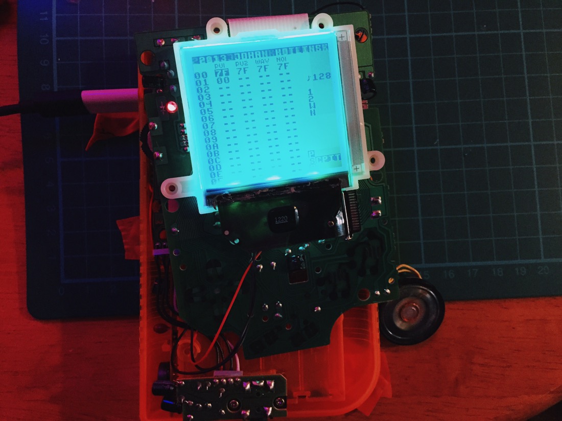 Next up, I installed a hex inverter chip to ‘bivert’ the screen. The new backlight polarising filter inverts the screen already, and so this step inverts it back to the regular display type, increasing the contrast in the process. It’s fiddly, but drastically improves the clarity. I’m pretty blind, so any picture improvement is a win.